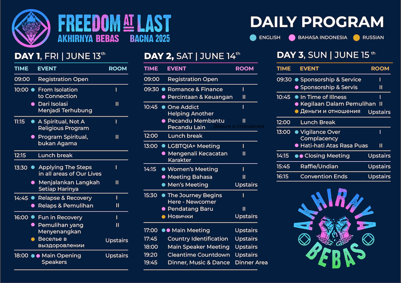 We’re so excited to be hosting our 22nd annual Narcotics Anonymous convention on the beautiful Island of the Gods. We will be celebrating Freedom At Last – Akhirnya Bebas with three days of fellowship, recovery meetings and connection.